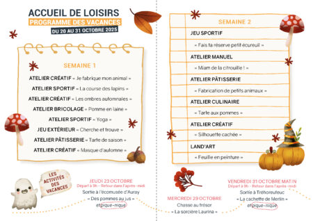 Le programme des vacances d’automne pour les enfants de 3 à 6 ans Quoi de prévu pendant les vacances d’été à l’accueil de loisirs ? Télécharger la plaquette juste ici