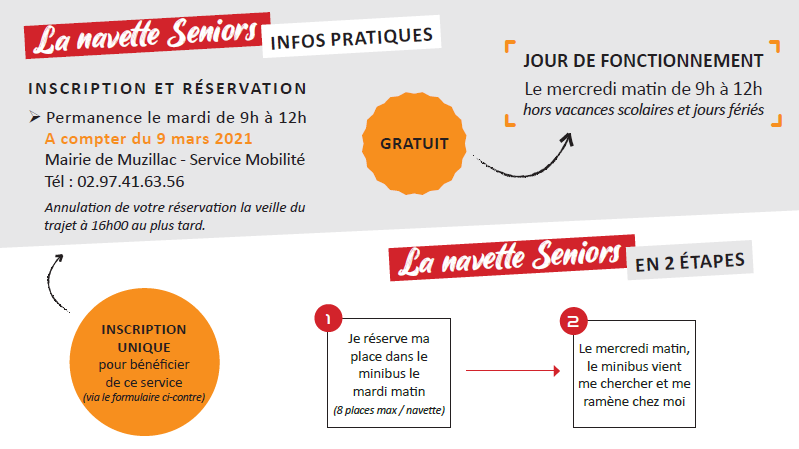 Vous pouvez également le joindre à ces mêmes horaires par téléphone : 02.97.41.63.56 ou 06.74.84.70.51 ou par mail : mobilite@muzillac.fr
